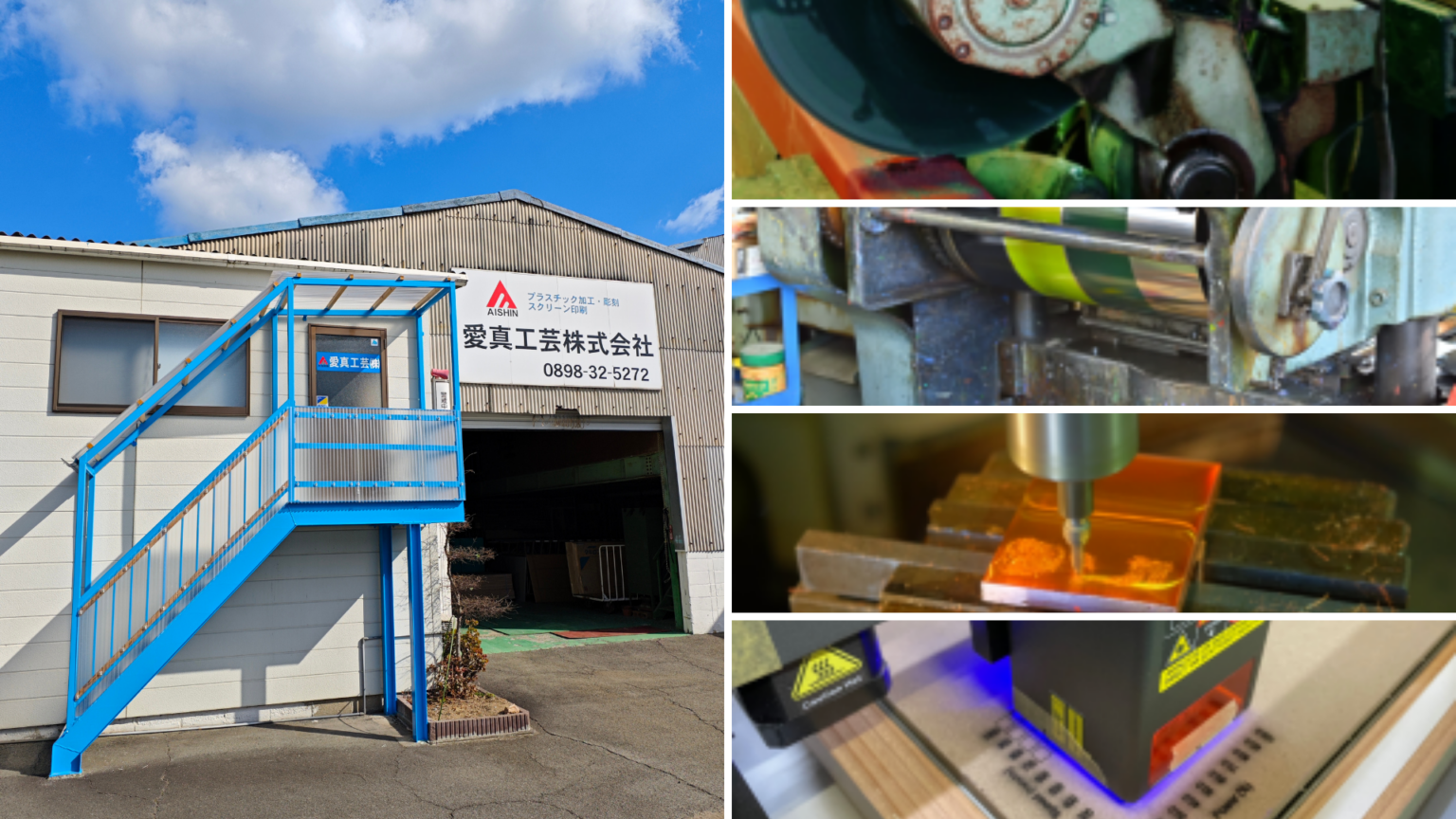 愛真工芸は、1980年の創業以来、愛媛県今治市で銘板・看板・プラスチック加工などのモノづくりに邁進してきました。